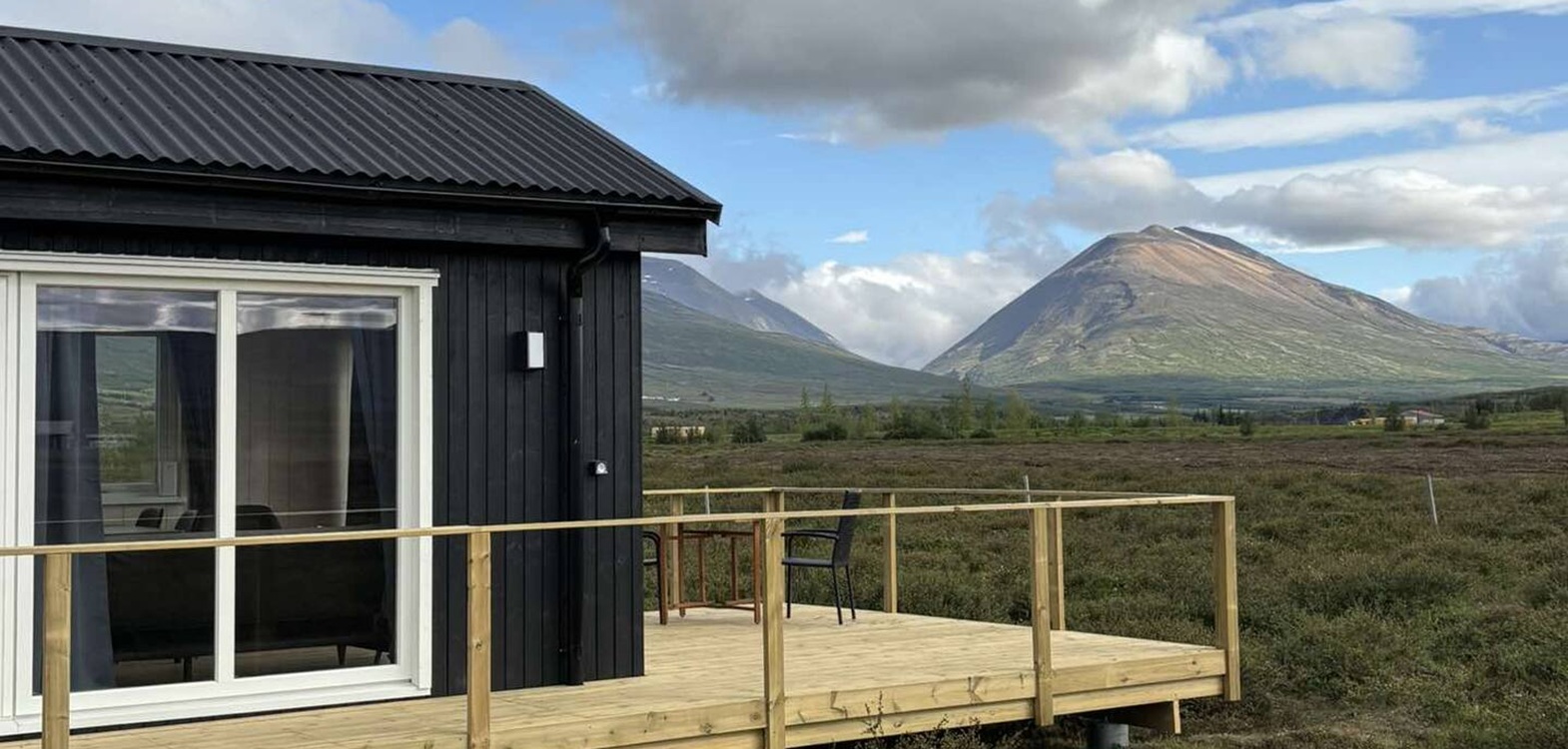 This cottage has a kitchenette, dining table and views of the river and surrounding mountains.